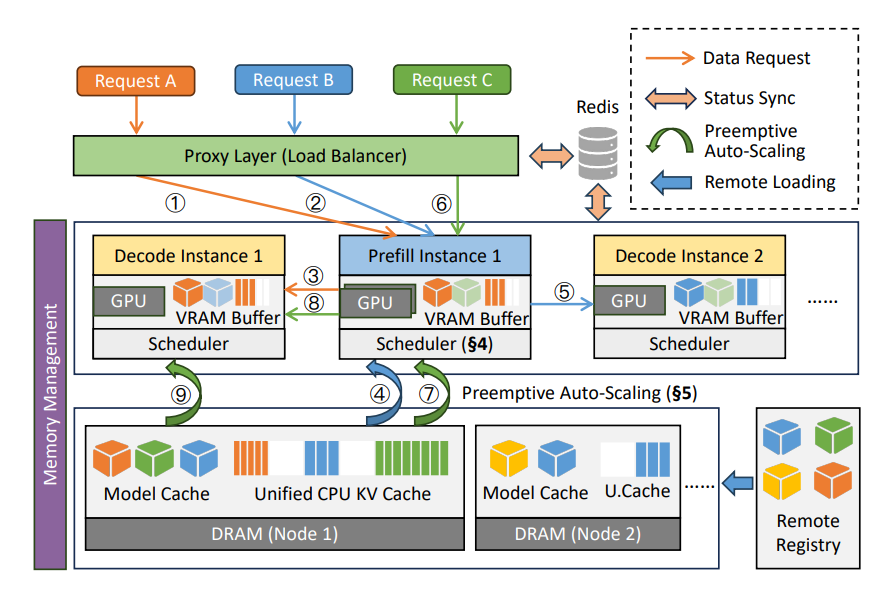 Технически система решает две ключевые задачи: планирование токенов и оптимизацию автомасштабирования. Aegaeon разделяет обработку на этапы prefill и decoding, используя разные стратегии планирования для каждого. Время автомасштабирования сокращено на 97% благодаря переиспользованию компонентов, явному управлению памятью и мелкозернистой синхронизации KV-кеша.