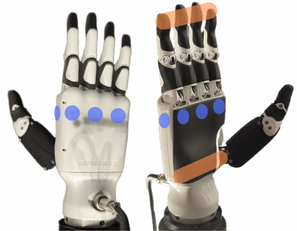 Тактильная перчатка использует 6 IMU-модулей WitMotion JY61P — пять на кончиках пальцев и один на тыльной стороне ладони. Для точного захвата тонких предметов применяется датчик Холла 49E на большом пальце в паре с магнитом на указательном. Эта комбинация решает главную проблему роботизированного захвата — структурные различия между человеческой и роботизированной кистями. Система собирается за несколько часов из 3D-печатных деталей по принципу конструктора LEGO.