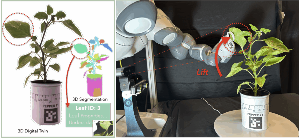 Исследователи из UC Berkeley представили Botany-Bot — систему для создания детализированных цифровых двойников живых растений. Робот сегментирует листья с точностью 90.8%, обнаруживает их с точностью 86.2% и может физически поднимать листья для фотографирования скрытых поверхностей с успешностью 77.9%.